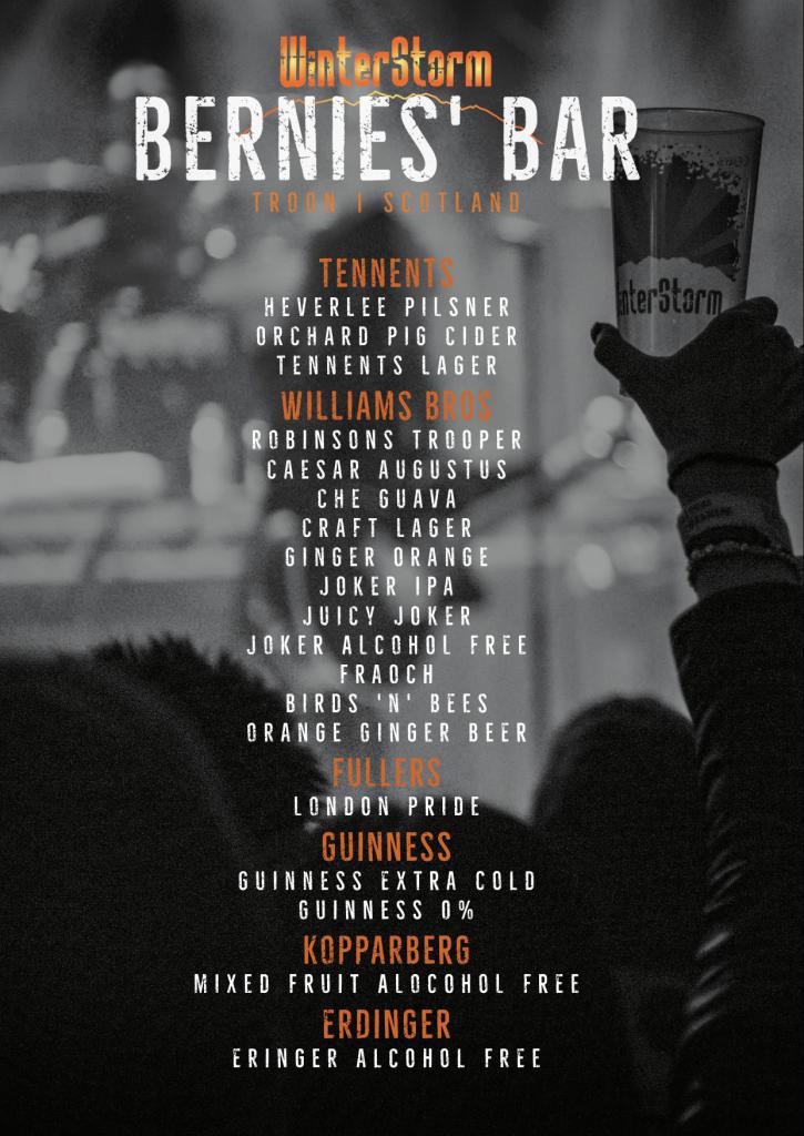 The bars were renamed in 2024 as Bernies' Bar as tribute to Messrs Marsden and Torme who gave us two of the greatest performances WinterStorm has witnessed before their passing.